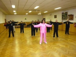 ACAMA ALSACE , Premier jour du stage du Yi Jin Jing , les stagiaires sont en train de répéter , les mouvements avec leur professeur.Saliha LINDER.